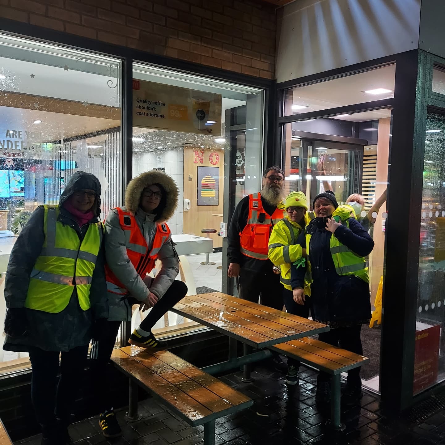 ButtonOur Streetwatch teams are not afraid of the wind, rain or snow and was still out incase anyone needed them. the teams are usually out on a tuesday, friday and Saturday evening in areas that people are around and are available to chat too and help if needed, Working with the door teams at pubs and the CCTV they are on call to help.